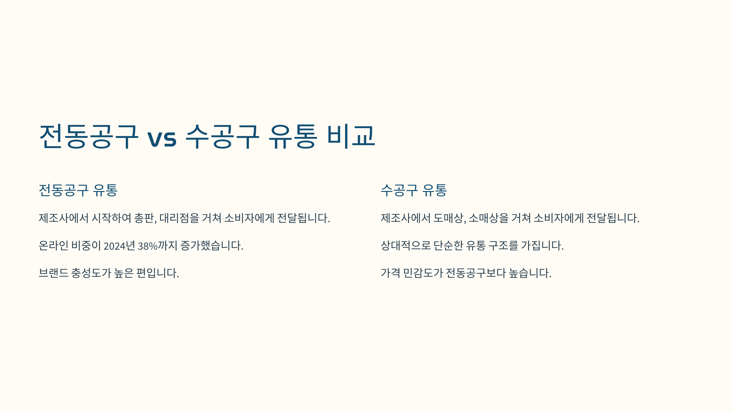 전동공구의 경우 직수입업체와 공식 유통업체, 리셀러, 소매점까지 단계별로 경로가 세분화돼 있어요. 수공구는 도매상과 소매상, 온라인 직거래로 간소화된 구조를 보이는 경우가 많답니다. 이 때문에 전동공구는 마진율과 거래 방식에 있어 수공구보다 훨씬 더 복잡하고 체계적이에요.