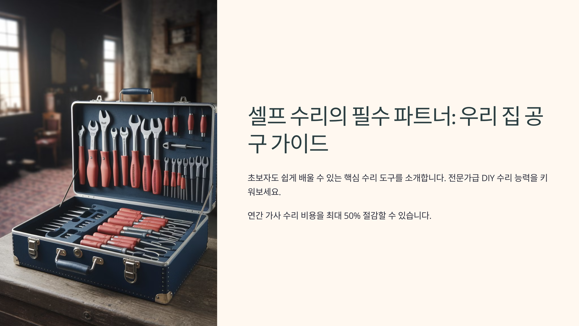 ‘내가 생각했을 때’ 이런 작업을 직접 해보면 성취감도 생기고, 전문가 부르느라 드는 비용도 아낄 수 있어 아주 뿌듯해요. 😎 그럼 본격적으로 어떤 공구들이 필요한지 알아볼까요?