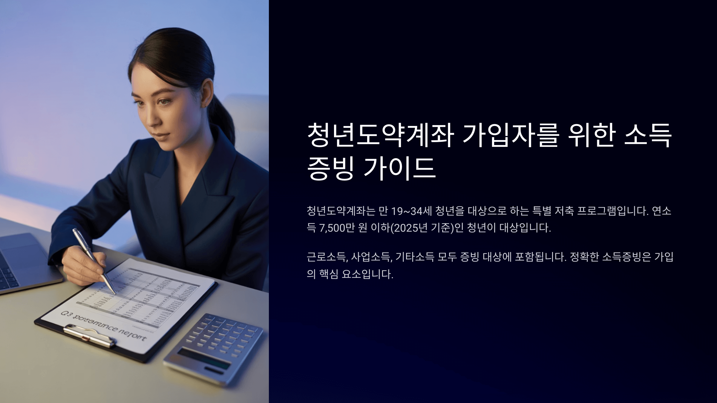 청년도약계좌는 청년의 자산 형성을 지원하기 위한 제도이기 때문에, 소득이 높을수록 지원은 줄고, 소득이 낮을수록 매칭 지원금이 많아지는 구조랍니다. 그래서 정확하고 균형 있는 소득 인식이 필수예요.