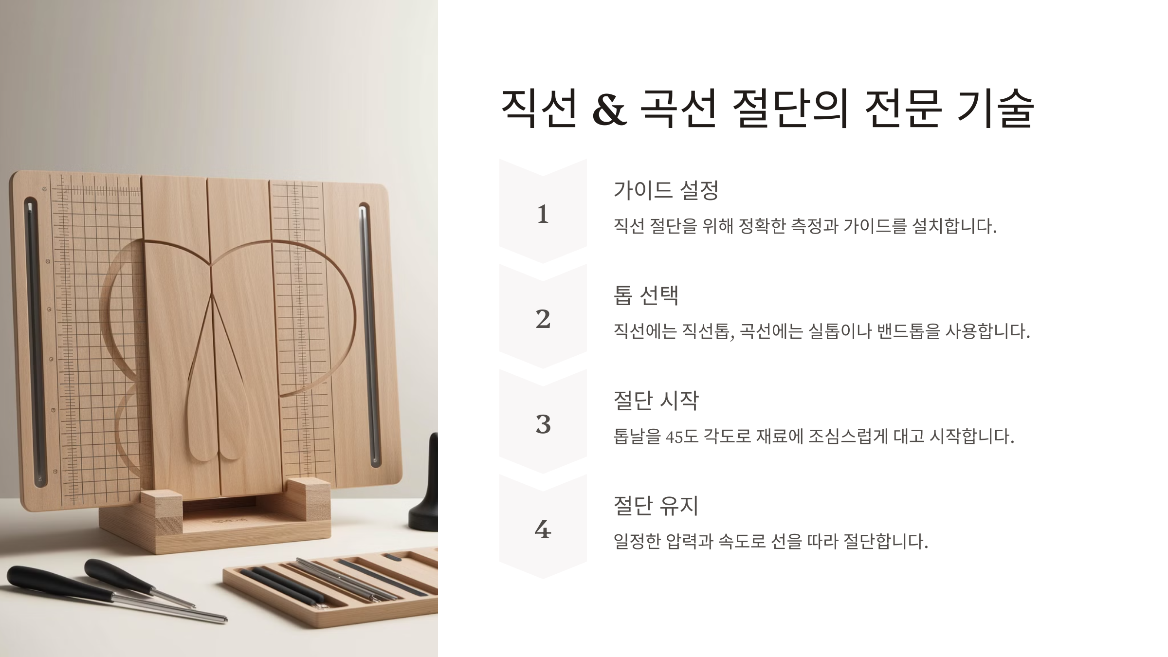 곡선 절단은 날의 폭과 톱의 진동도 큰 영향을 줘요. 날이 넓으면 정밀한 곡선을 내기 어려우니 얇고 세밀한 날을 고르는 게 포인트예요!