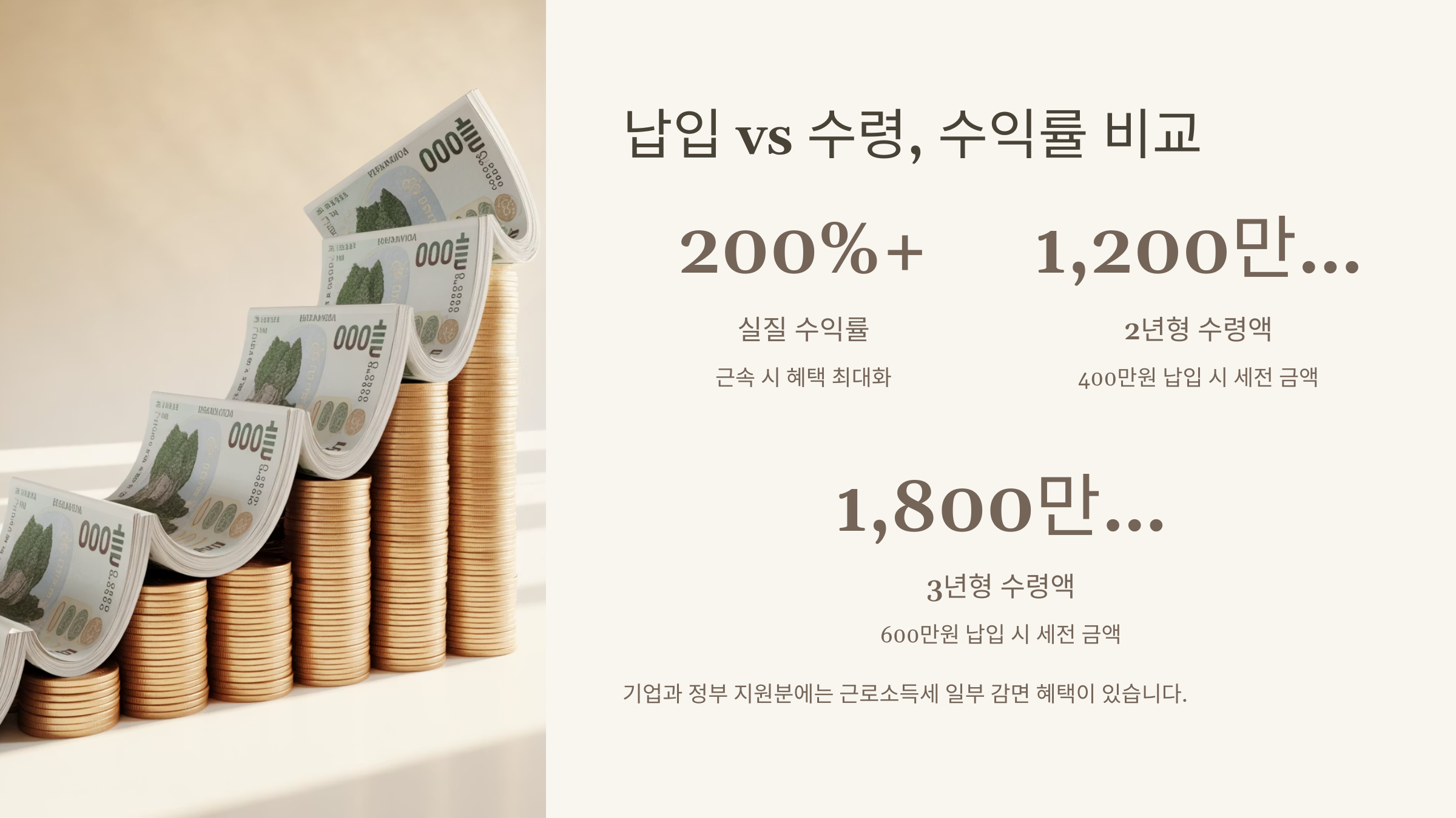 | 총 수령 금액 | 1600만 원 | 3000만 원 |