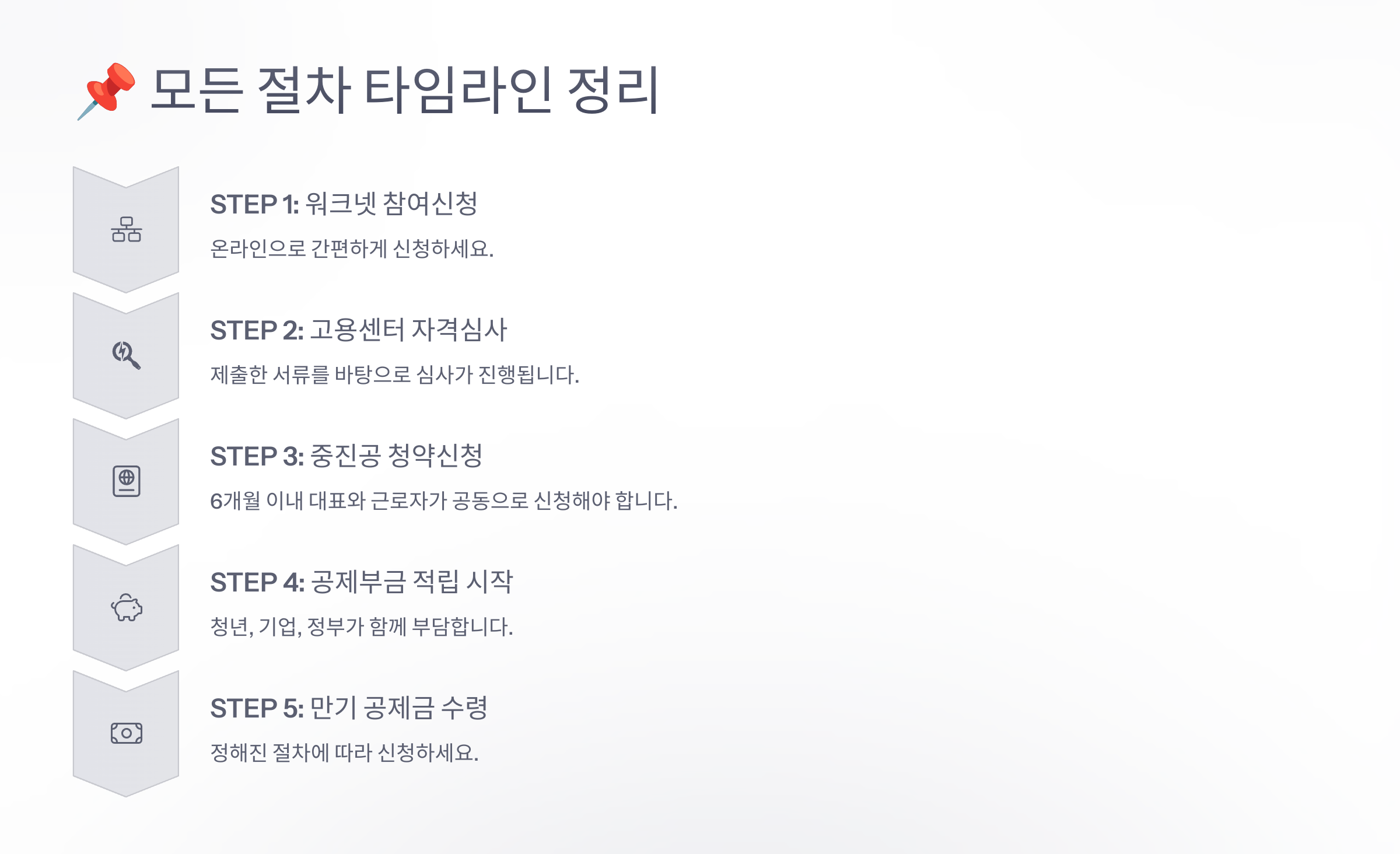 보통 입사 후 3개월쯤 됐을 때 기업과 합의 후 신청을 시작하는 경우가 많아요. 신청은 워크넷을 통해 진행되며, 워크넷 회원 가입 → 채용정보 등록 → 참여신청 순으로 진행돼요. 여기서 기업 확인 절차가 추가되므로 담당자 협조도 매우 중요하답니다.