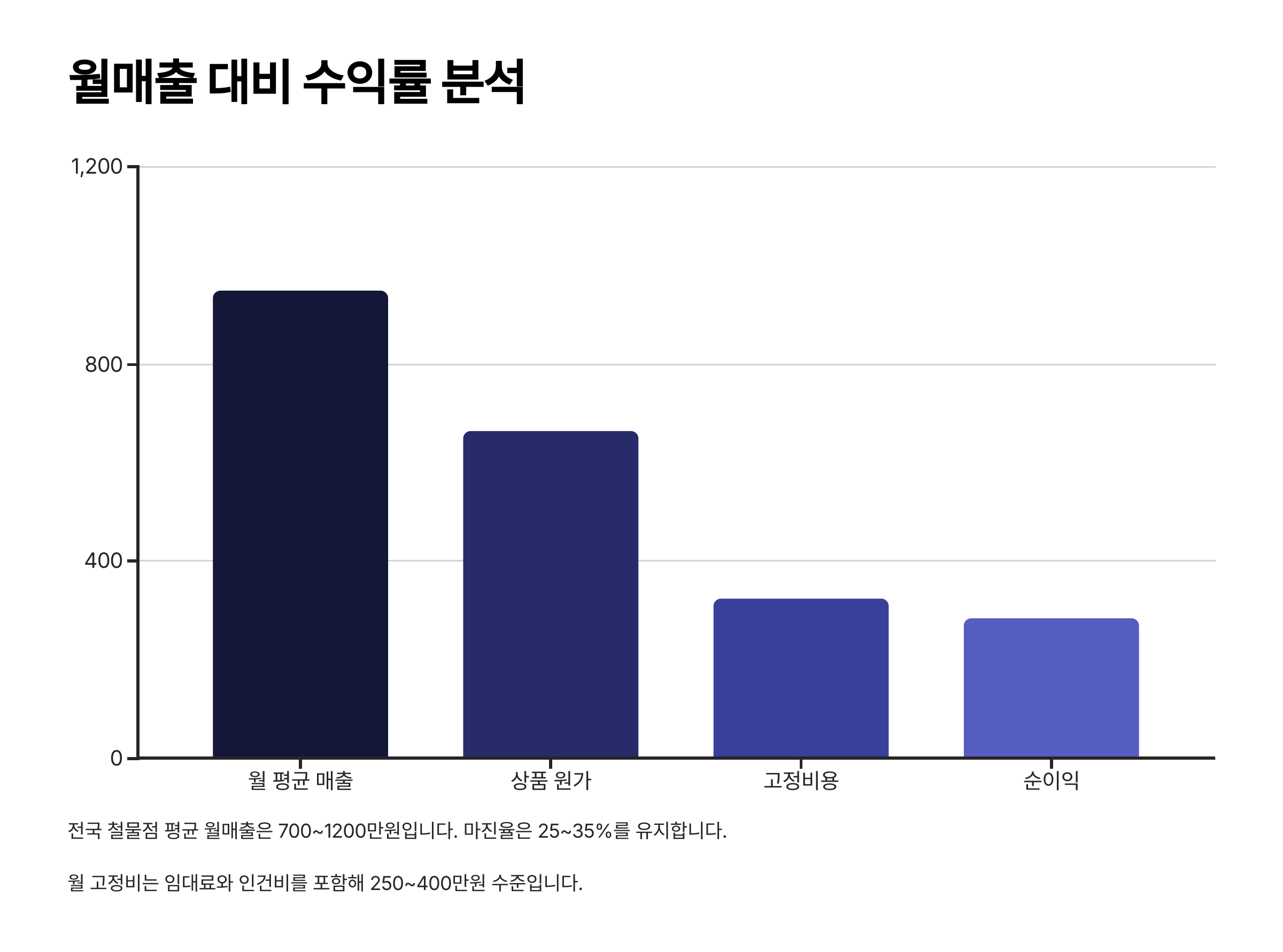 ์ฒ ๋ฌผ์ ์ ํ๊ท ๋ง์ง์จ์ ์ฝ 20~30% ์์ค์ด์์. ์ฆ, ์๋งค์ถ 1000๋ง ์์ ๊ธฐ์ค์ผ๋ก ํ๋ฉด ์์์ต์ ์ฝ 200๋ง ์~300๋ง ์ ์ ๋๋ผ๊ณ ๋ณด๋ฉด ๋ผ์. ์ฌ๊ธฐ์ ์ธ๊ฑด๋น๋ ๊ด๋ฆฌ๋น, ์์ธ ๋ฑ์ ๋นผ๋ฉด ์ค์ ๋จ๋ ๊ธ์ก์ ์กฐ๊ธ ๋ ์ค์ด๋ค ์ ์์ด์.