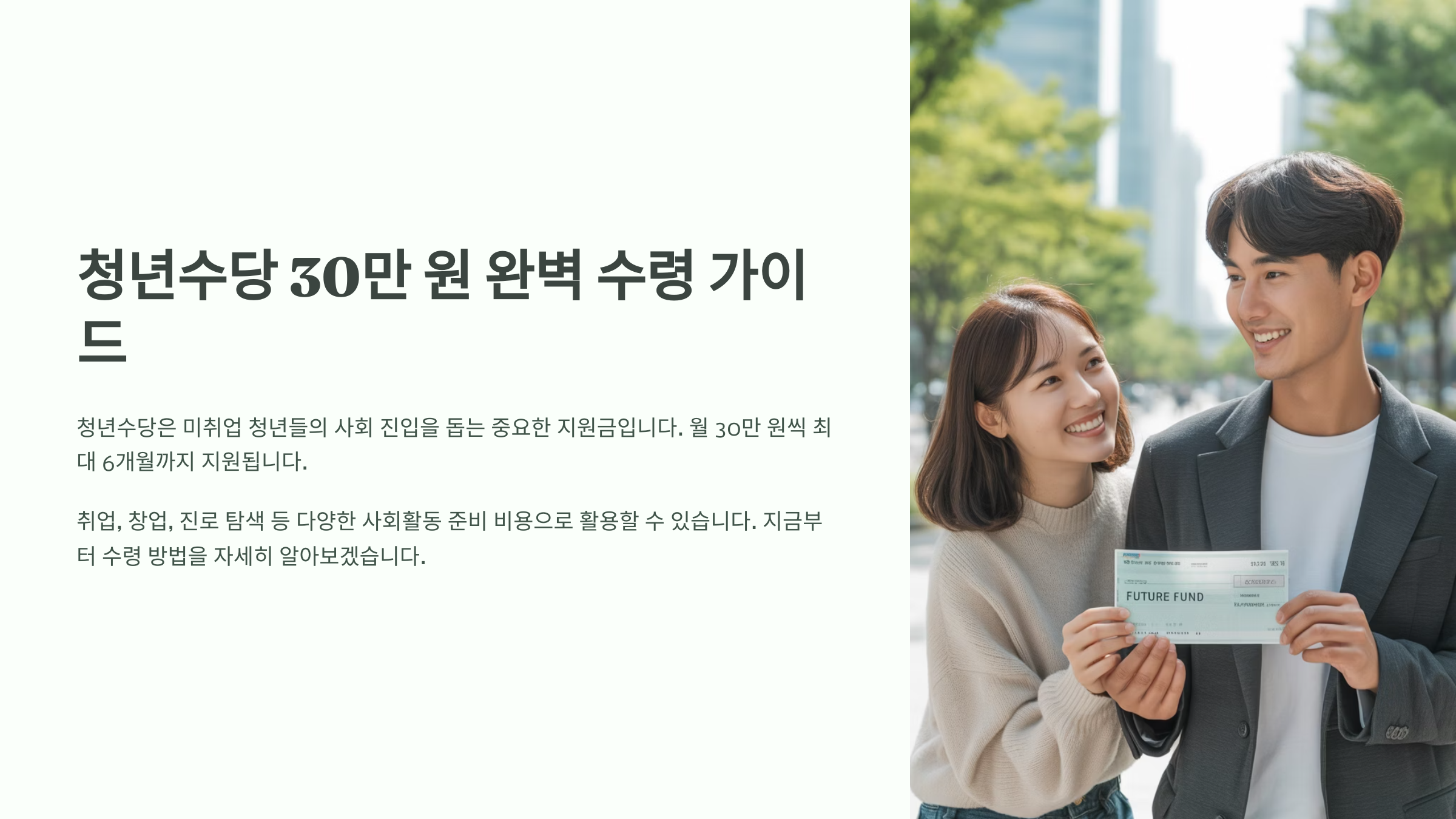 ์ ๊ฐ ์๊ฐํ์ ๋ ์ด ์ ๋๋ ๋จ์ํ ๋ณต์ง๊ฐ ์๋๋ผ ์ฒญ๋ ์ ๊ฒฝ์ ์ ์๋ฆฝ๊ณผ ๋ฏธ๋ ์ค๊ณ์ ๋๋ค๋์ด ๋๋ ํ๋ฅญํ ์ ์ฑ ์ด๋ผ๊ณ ๋๊ปด์ก์ด์. ๋จ, ๋ชจ๋ ์ฒญ๋ ์ด ๋์์ ์๋๋ผ ์ ์ฒญ ์๊ฑด๊ณผ ์ฃผ์์ฌํญ์ ์ ์์๋๋ ๊ฒ ์ค์ํด์.