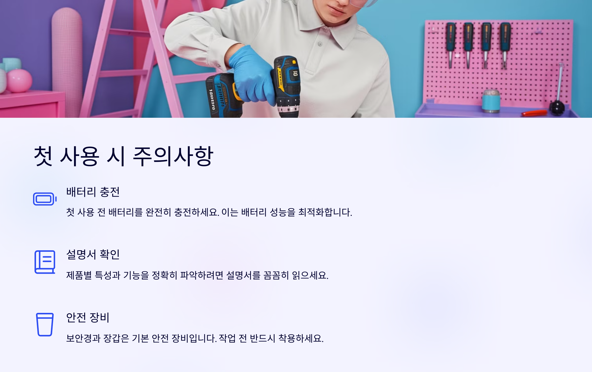 ์ ๋ฆฌํ์๋ฉด, ๋ฌด์ ๋๋ผ์ด๋ฒ๋ ๊ฐ๋จํ ๋๊ตฌ ๊ฐ์ง๋ง ์ฌ๋ฐ๋ฅด๊ฒ ์ฌ์ฉํ๋ ค๋ฉด ๊ผญ ์ฒดํฌํด์ผ ํ ๊ฒ๋ค์ด ์์ด์. ์ด์ฌ์์ผ์๋ก ์์ ํ๊ฒ ์ฒ์ฒํ ์ตํ๋ ๊ฒ ์ค์ํ๋ต๋๋ค.