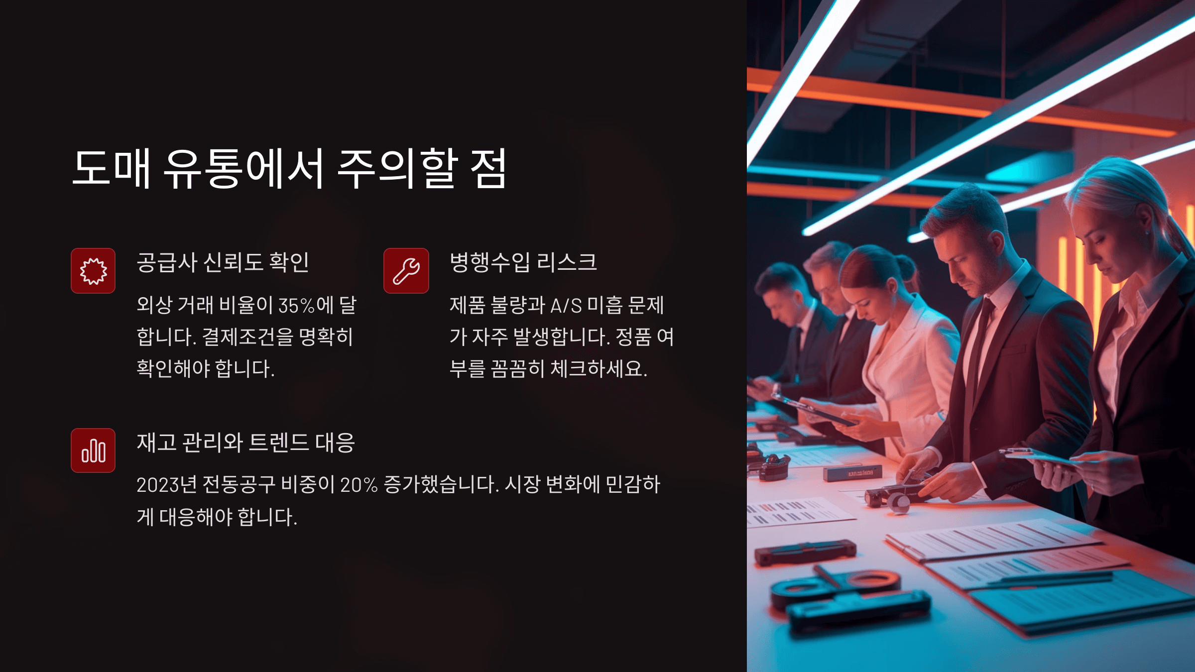 ์ด์ฒ๋ผ ๋๋งค ์ ํต์ ๋จ์ํ ๋ฌผ๊ฑด์ ์ธ๊ฒ ์ฌ์ ํ๋ ๊ฒ ์๋๋ผ, ์ฌ๋ฌ ๋ณ์์ ๋ฆฌ์คํฌ๋ฅผ ๊ด๋ฆฌํ๋ ์ฌ์ ์ด์์. ์ค๋น๋ ์์ธ๋ก ์ ๊ทผํ๋ค๋ฉด ๋ ์์ ์ ์ธ ์ ํต ๊ตฌ์กฐ๋ฅผ ๋ง๋ค ์ ์๋ต๋๋ค! ๐ช