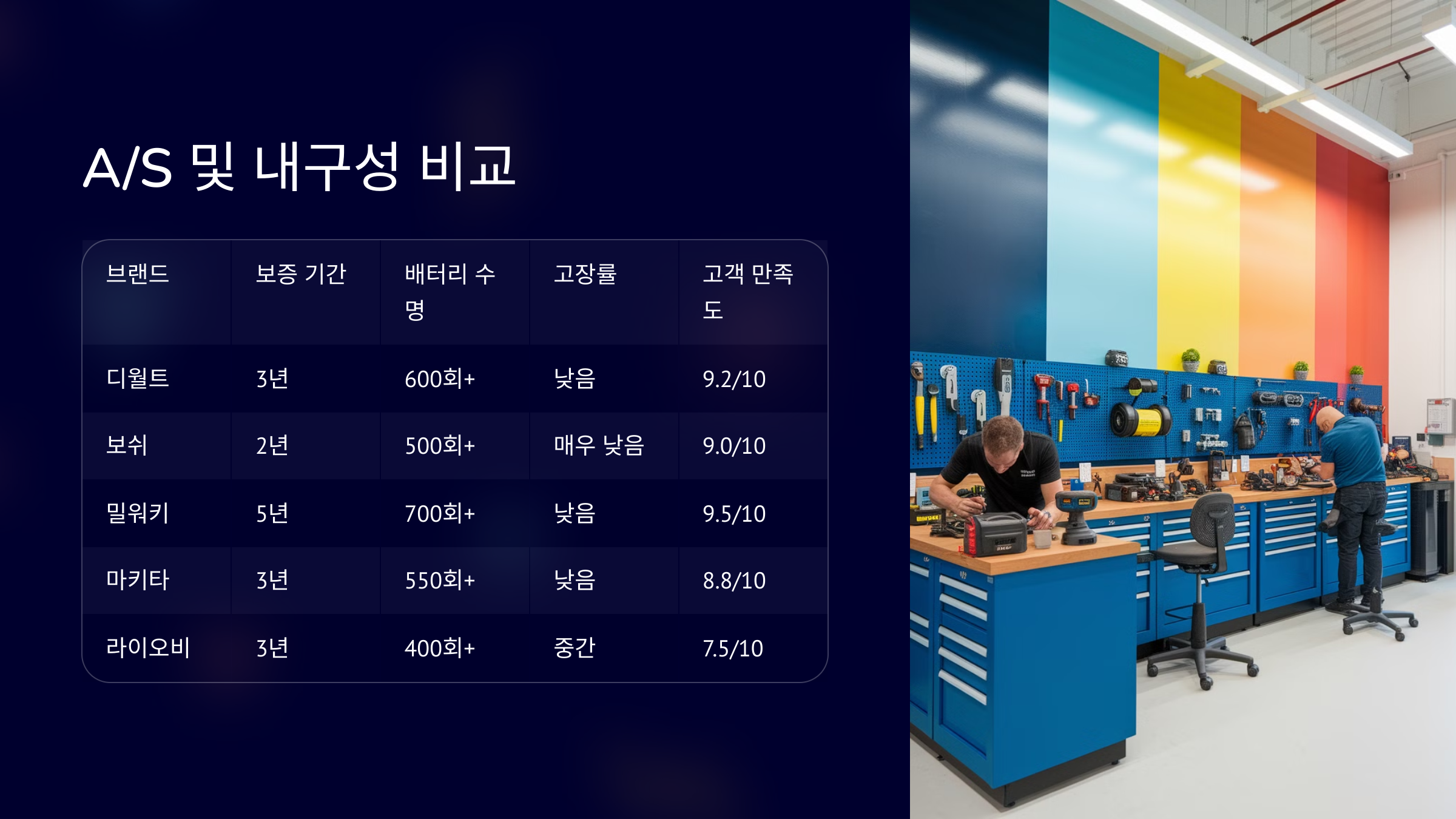 ๋ธ๋๋๋ณ A/S ๋ฐ ๋ด๊ตฌ์ฑ ๋น๊ต ๐งพ