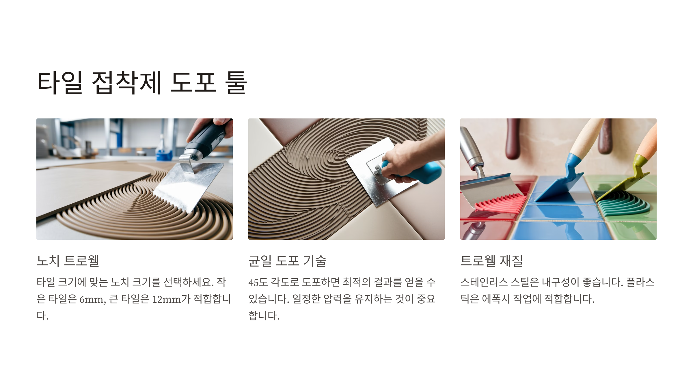 ํฑ๋ ํค๋ผ๋ ํฑ๋์ ํฌ๊ธฐ๋ ๊ฐ๊ฒฉ์ ๋ฐ๋ผ ์ฉ๋๊ฐ ๋ฌ๋ผ์. ์ผ๋ฐ ๋ฒฝ ํ์ผ์๋ ์์ ํฑ๋(4mm ์ดํ), ๋ฐ๋ฅ ํ์ผ์ด๋ ๋ํ ํ์ผ์๋ ํฐ ํฑ๋(6~10mm)๊ฐ ์ ํฉํ๋ต๋๋ค. ๋๋ฌด ์์ ์ ์ฐฉ์ ์ธต์ ํ์ผ์ด ๋จ์ด์ง ์ ์๊ณ , ๋๋ฌด ๋๊บผ์ฐ๋ฉด ๋ ๋ฒจ์ด ์ด๊ธ๋ ์ ์์ด์ ๋ฑ ์ ๋นํ ๋๊ป๋ฅผ ์ ์งํ๋ ๊ฒ ์ค์ํด์.