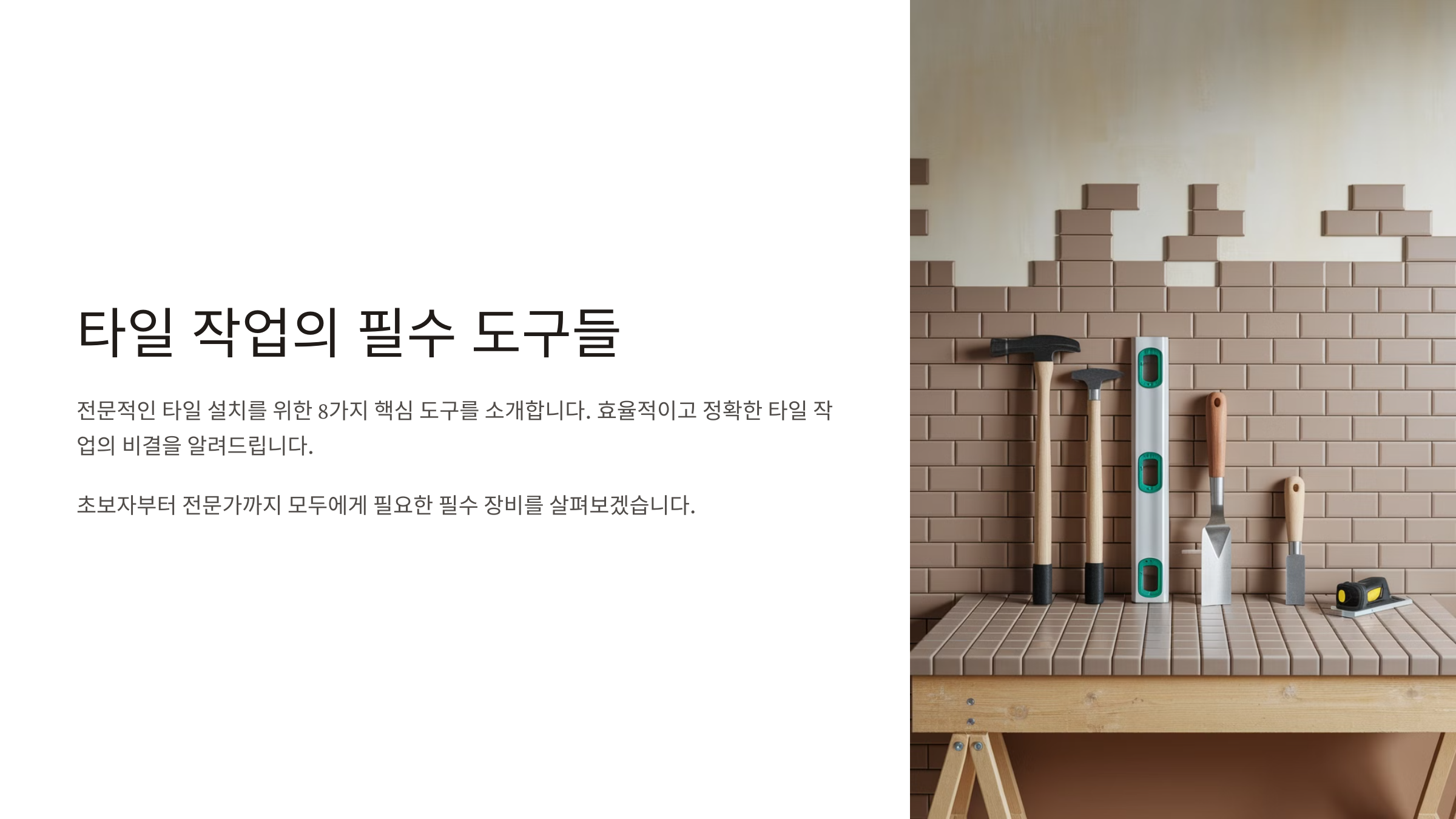 ํ์ผ ์๊ณต์ ๋ณด๊ธฐ๋ณด๋ค ๋ณต์กํ๊ณ ์ฌ์ธํ ์์ ์ด์์. ์ ๋๋ก ๋ ๋๊ตฌ๊ฐ ์๋ค๋ฉด ์์ ํจ์จ๋ ๋จ์ด์ง๊ณ ๋ง๊ฐ ํ์ง๋ ๋ฎ์์ง๊ธฐ ์ฝ๋ต๋๋ค. ์์ฆ DIY ํ์ผ ์๊ณต๋ ๋ง์์ง๊ณ ์์ด์, ์ด์์ด๋ฉด ์ ํํ ์ ๋ณด์ ํจ๊ป ํ์ ๊ณต๊ตฌ๋ค์ ์ ์๊ณ ์์ํ๋ ๊ฒ ์ข์์.