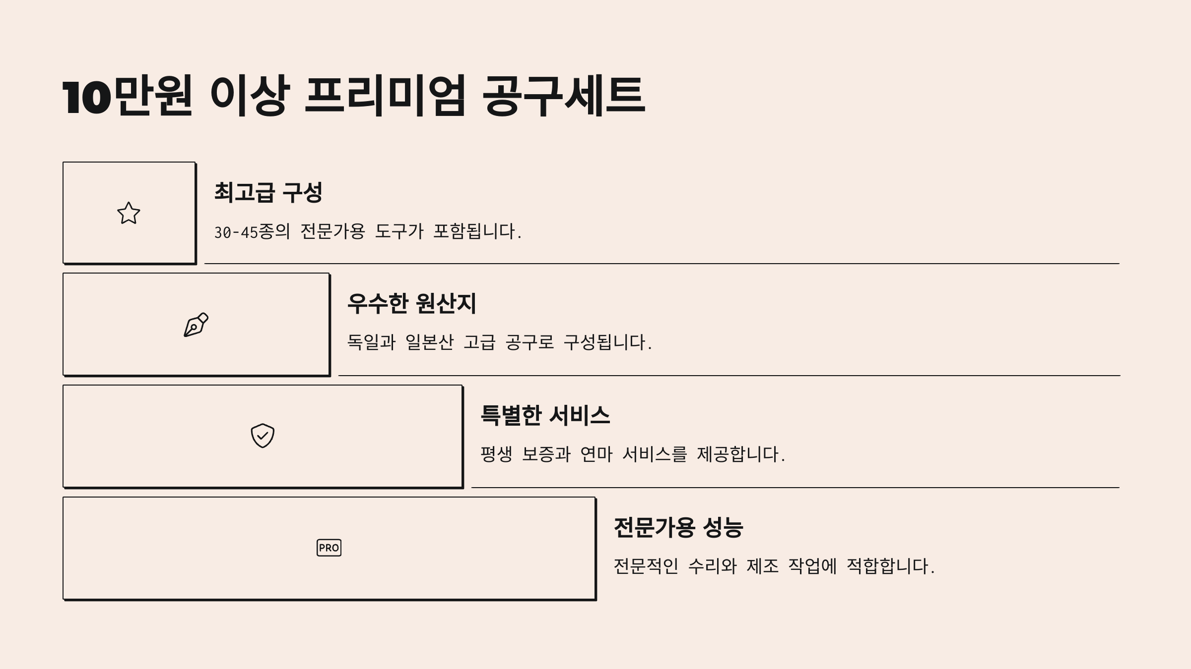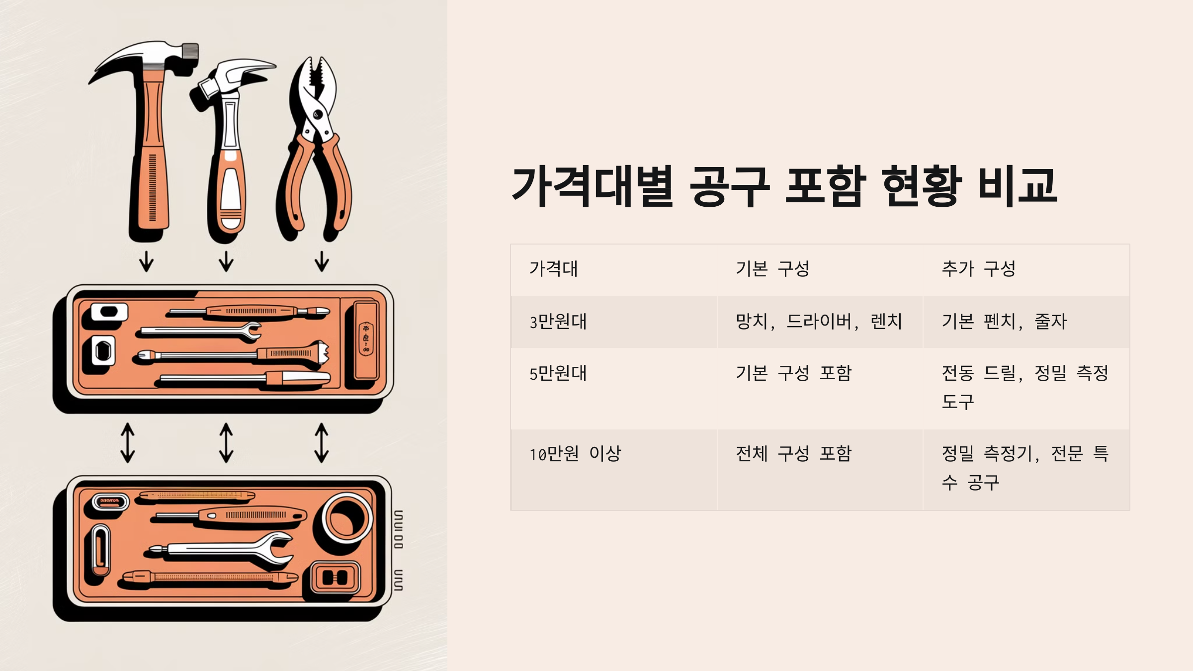| ๊ฐ๊ฒฉ๋ | ๊ธฐ๋ณธ ๊ตฌ์ฑ | ์ ๋ ๊ณต๊ตฌ ํฌํจ ์ฌ๋ถ | ์ถ๊ฐ ๊ธฐ๋ฅ |