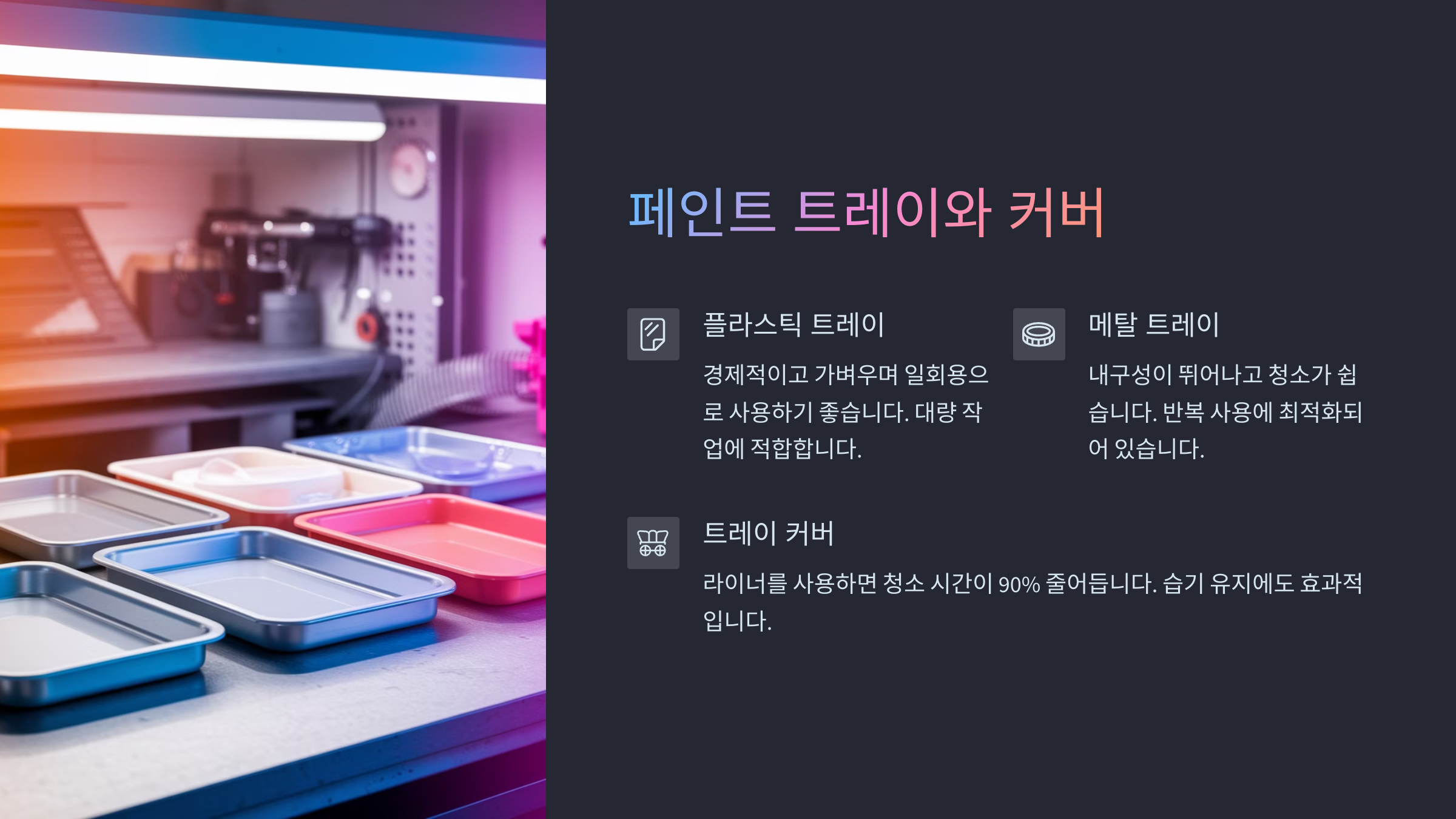 ์ด ๋๊ตฌ๋ค์ ๋์ ๋์ง๋ ์์ง๋ง, ํ์ธํธ๋ฅผ ๋ฐ๋ฅด๊ธฐ ์ ์ ์์ ํ๊ฒฝ์ ‘๊นจ๋ํ๊ฒ ์ค๋นํด์ฃผ๋ ์กฐ์ฐ’์ด์์. ์ด๋ฐ ๊ธฐ์ด ์์ ์ด ์ ๋์ด ์์ด์ผ ์ง์ง ์์ ๋ง๊ฐ์ด ์์ฑ๋์ฃ ! ๐ช