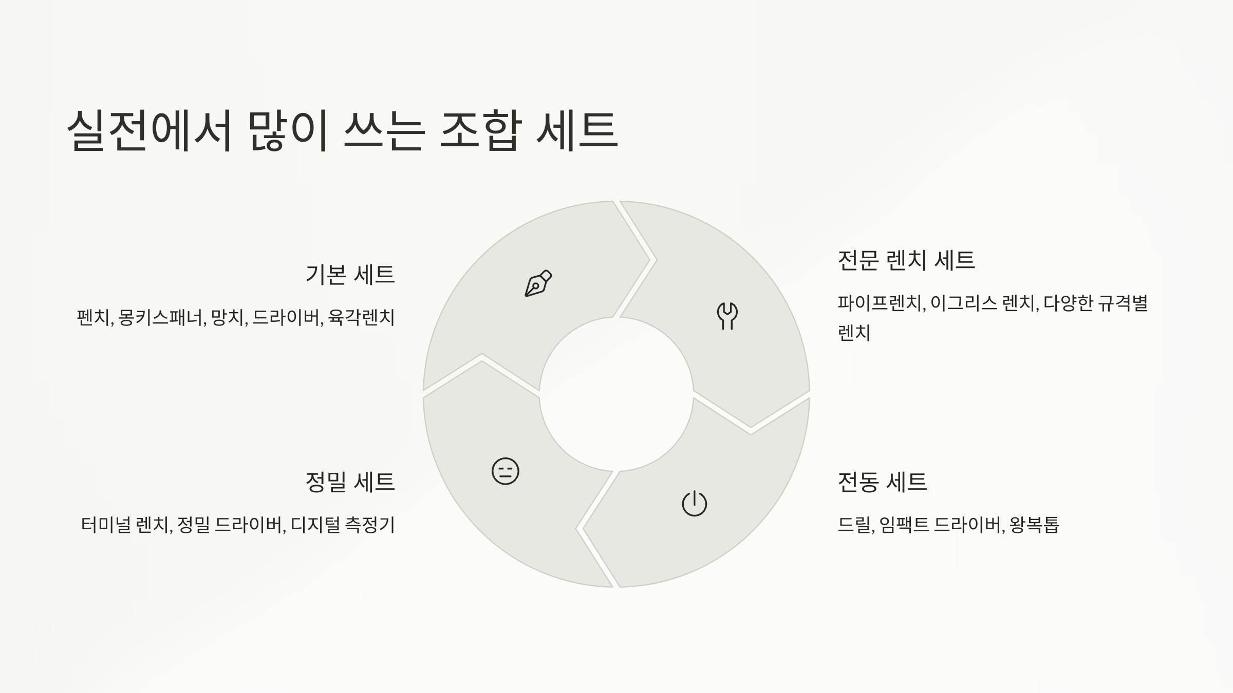 | ์ธํธ ์ ํ | ๊ตฌ์ฑ ๊ณต๊ตฌ | ์ฌ์ฉ ์ฉ๋ |
