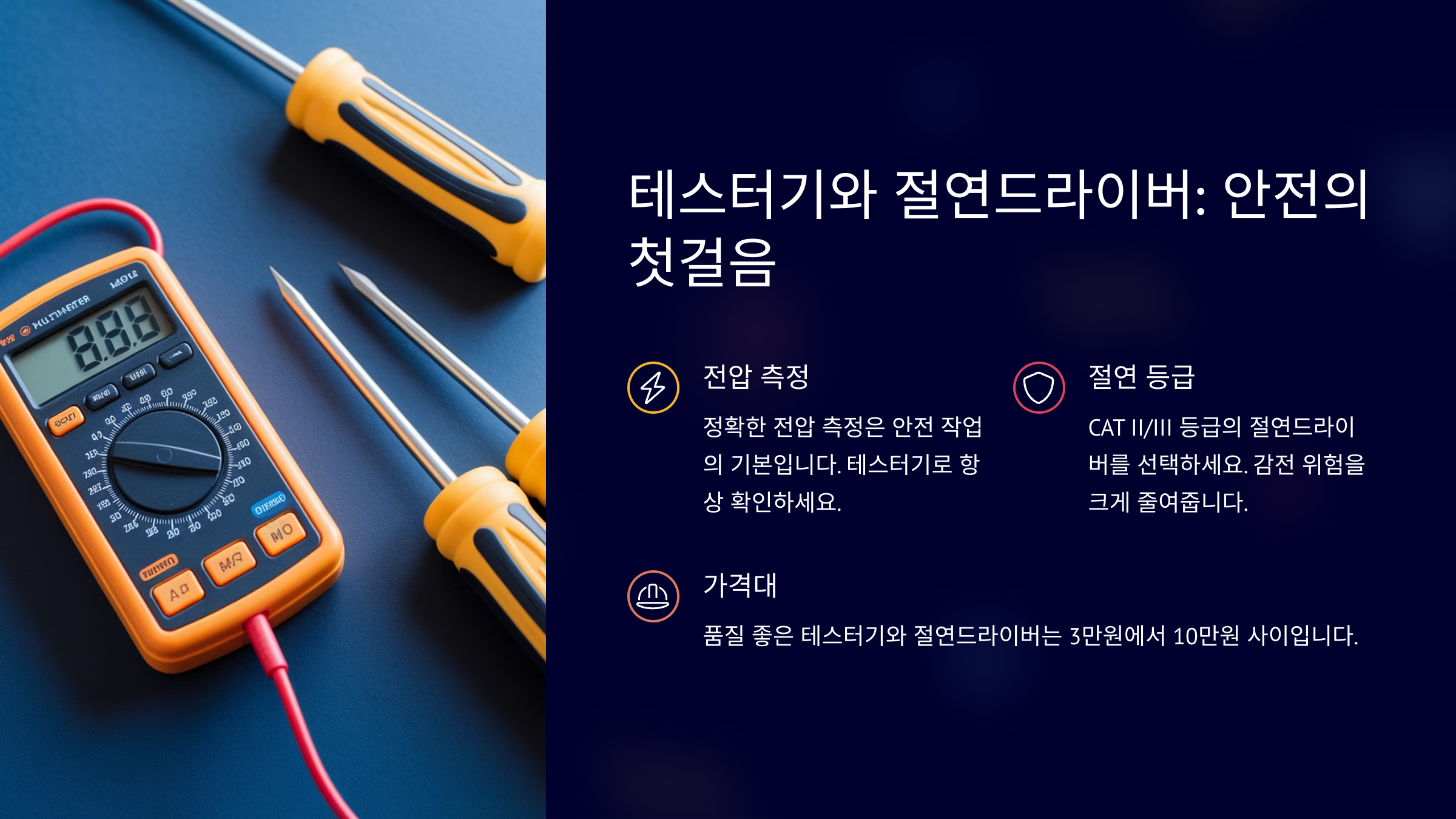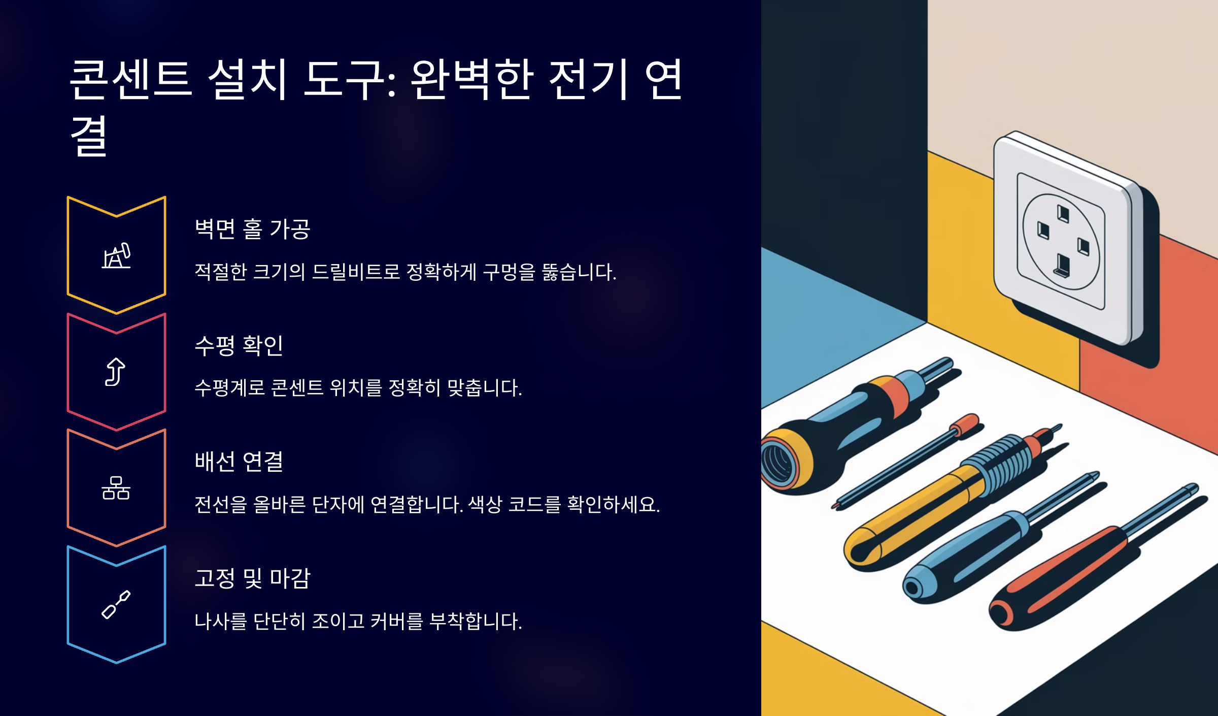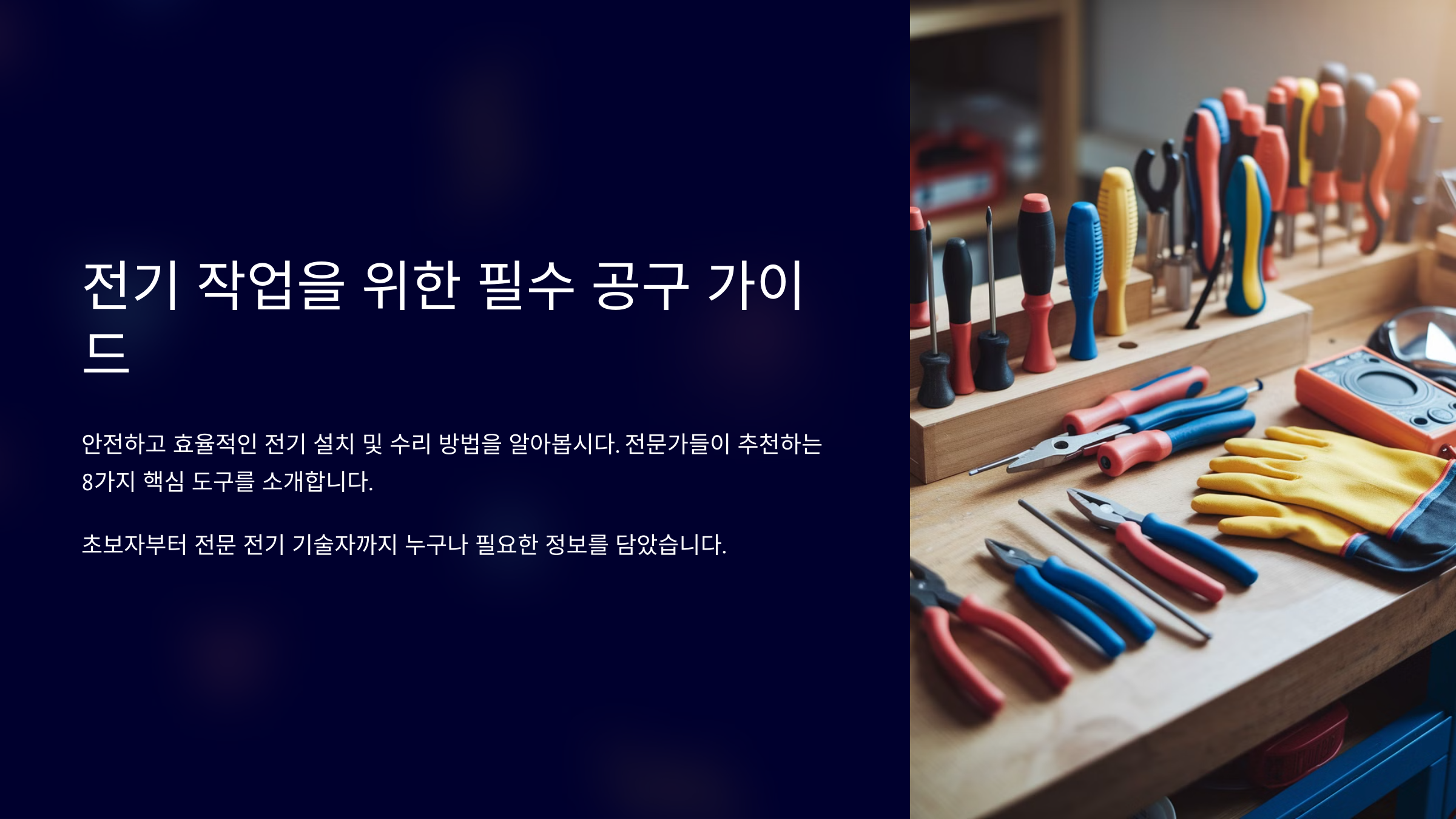 ์ ๊ธฐ ์ค์น๋ ๊ฐ๋จํ ์๋ฆฌ๋ฅผ ์ง์ ํด๋ณด๋ ค๋ ์ฌ๋๋ค์๊ฒ ๊ผญ ํ์ํ ๊ฒ ๋ฐ๋ก ์ ์ ํ ๊ณต๊ตฌ์์. ๊ธฐ๋ณธ์ ์ธ ๋๊ตฌ๋ง ์์ด๋ ๋๋ถ๋ถ์ ๊ฐ์ ์ฉ ์ ๊ธฐ ์์ ์ ์ค์ค๋ก ํด๊ฒฐํ ์ ์๊ฑฐ๋ ์. ๋ฌผ๋ก ์์ ์ด ์ต์ฐ์ ์ด๋, ์ ๋ขฐํ ์ ์๋ ๊ณต๊ตฌ๋ฅผ ๊ฐ์ถ๋ ๊ฒ ์ค์ํ๋ต๋๋ค.